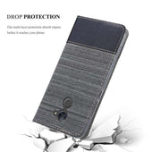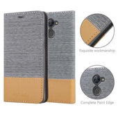 DESIGN: Modische Book Style Hülle im Stoff-Look mit Kunstleder-Applikation ohne störende Lasche oder Verschluss. Das Kartenfach und die Standfunktion machen dieses Case zu einem wahren Multitalent.