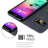 DESIGN: Modische Book Style Hülle mit Kartenfach, Standfunktion und unsichtbarem Magnetverschluss. Das Cover ist in einem Kunstleder-Look mit zweifarbigem Design und Wildkunstleder-Applikation.
