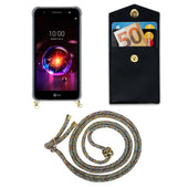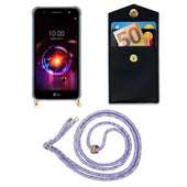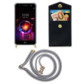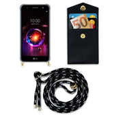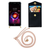 Cadorabo Handy Kette kompatibel mit LG X POWER 3 Silikon Schutzhülle mit Gold Ringen, Kordel Band und abnehmbarem Etui