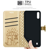 Cadorabo Hülle kompatibel mit Samsung Galaxy A10 / M10 Niedliche Hunde und Katzen - Schutzhülle mit Standfunktion und Kartenfächern