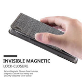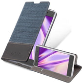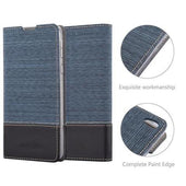 DESIGN: Modische Book Style Hülle im Stoff-Look mit Kunstleder-Applikation ohne störende Lasche oder Verschluss. Das Kartenfach und die Standfunktion machen dieses Case zu einem wahren Multitalent.