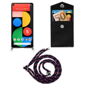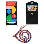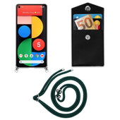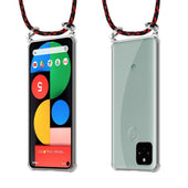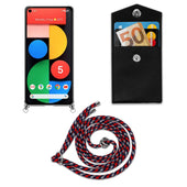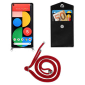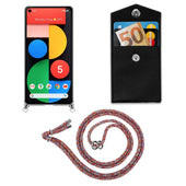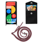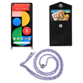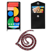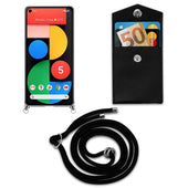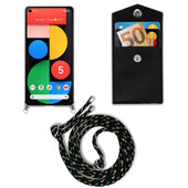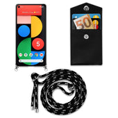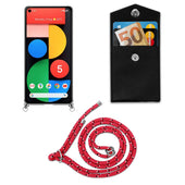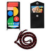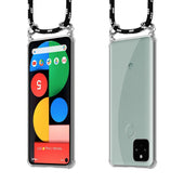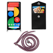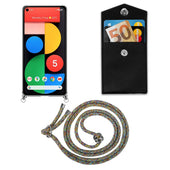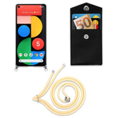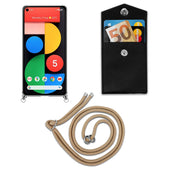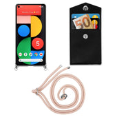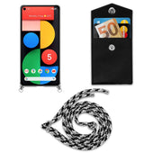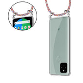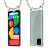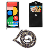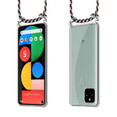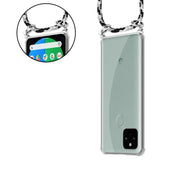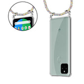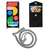 Cadorabo Handy Kette kompatibel mit Google PIXEL 5 Silikon Schutzhülle mit Silbernen Ringen, Kordel Band und abnehmbarem Etui
