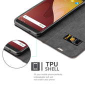 DESIGN: Ultra dünne Handytasche im Book-Style mit Kartenfach, Standfunktion, integriertem TPU Silikon Case und einem magnetischen Verschluss ohne störende Lasche.