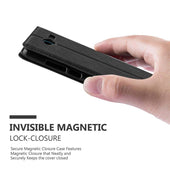 DESIGN: Ultra dünne Handytasche im Book-Style mit Kartenfach, Standfunktion, integriertem TPU Silikon Case und einem magnetischen Verschluss ohne störende Lasche.