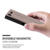 DESIGN: Ultra dünne Handytasche im Book-Style mit Kartenfach, Standfunktion, integriertem TPU Silikon Case und einem magnetischen Verschluss ohne störende Lasche.