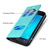 Cadorabo Hülle kompatibel mit Samsung Galaxy J1 2015 Schutzhülle mit Magnetverschluss, Standfunktion und 2 Sichtfenstern