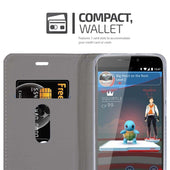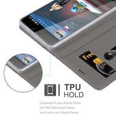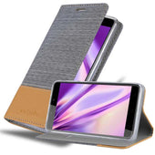 DESIGN: Modische Book Style Hülle im Stoff-Look mit Kunstleder-Applikation ohne störende Lasche oder Verschluss. Das Kartenfach und die Standfunktion machen dieses Case zu einem wahren Multitalent.