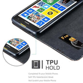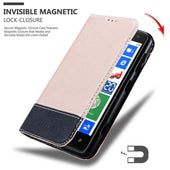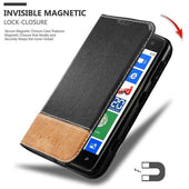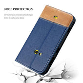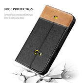 DESIGN: Modische Book Style Hülle mit Kartenfach, Standfunktion und unsichtbarem Magnetverschluss. Das Cover ist in einem Kunstleder-Look mit zweifarbigem Design und Wildkunstleder-Applikation.