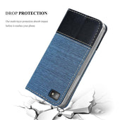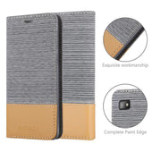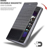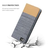 DESIGN: Modische Book Style Hülle im Stoff-Look mit Kunstleder-Applikation ohne störende Lasche oder Verschluss. Das Kartenfach und die Standfunktion machen dieses Case zu einem wahren Multitalent.
