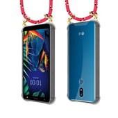 Cadorabo Handy Kette kompatibel mit LG K40 Silikon Schutzhülle mit Gold Ringen, Kordel Band und abnehmbarem Etui