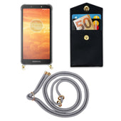 Cadorabo Handy Kette kompatibel mit Motorola MOTO E5 PLAY Silikon Schutzhülle mit Gold Ringen, Kordel Band und abnehmbarem Etui