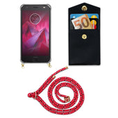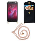 Cadorabo Handy Kette kompatibel mit Motorola MOTO Z2 PLAY / Z2 FORCE Silikon Schutzhülle mit Gold Ringen, Kordel Band und abnehmbarem Etui