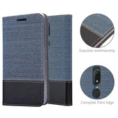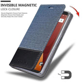 DESIGN: Modische Book Style Hülle im Stoff-Look mit Kunstleder-Applikation ohne störende Lasche oder Verschluss. Das Kartenfach und die Standfunktion machen dieses Case zu einem wahren Multitalent.