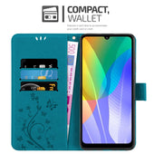 Cadorabo Hülle kompatibel mit Huawei Y6P Schutzhülle im Blumen Design mit Magnetverschluss, Standfunktion und Kartenfächern