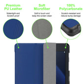 DESIGN: Diese 5mm dünne 360° Hülle ohne Auto On Off Funktion wurde mit einem Magnet-Verschluss und einer variablen Standfunktion designed, um die Nutzung so komfortabel wie möglich zu gestalten.