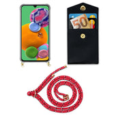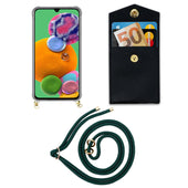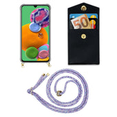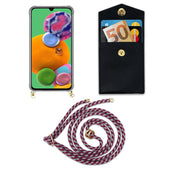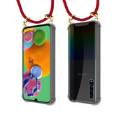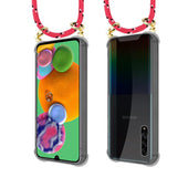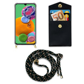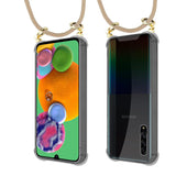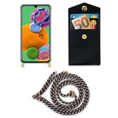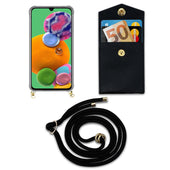 Cadorabo Handy Kette kompatibel mit Samsung Galaxy A90 5G Silikon Schutzhülle mit Gold Ringen, Kordel Band und abnehmbarem Etui