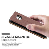 Cadorabo Hülle kompatibel mit Samsung Galaxy S6 EDGE Schutzhülle mit Standfunktion und Kartenfach in Bast-Optik