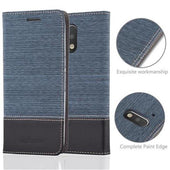 DESIGN: Modische Book Style Hülle im Stoff-Look mit Kunstleder-Applikation ohne störende Lasche oder Verschluss. Das Kartenfach und die Standfunktion machen dieses Case zu einem wahren Multitalent.