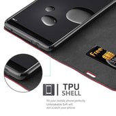 DESIGN: Ultra dünne Handytasche im Book-Style mit Kartenfach, Standfunktion, integriertem TPU Silikon Case und einem magnetischen Verschluss ohne störende Lasche.