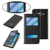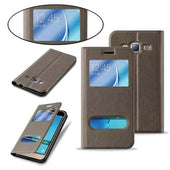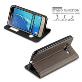 Cadorabo Hülle kompatibel mit Samsung Galaxy J3 2016 Schutzhülle mit Magnetverschluss, Standfunktion und 2 Sichtfenstern