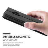 DESIGN: Ultra dünne Handytasche im Book-Style mit Kartenfach, Standfunktion, integriertem TPU Silikon Case und einem magnetischen Verschluss ohne störende Lasche.