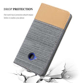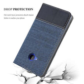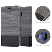 DESIGN: Modische Book Style Hülle im Stoff-Look mit Kunstleder-Applikation ohne störende Lasche oder Verschluss. Das Kartenfach und die Standfunktion machen dieses Case zu einem wahren Multitalent.