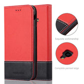 DESIGN: Modische Book Style Hülle mit Kartenfach, Standfunktion und unsichtbarem Magnetverschluss. Das Cover ist in einem Kunstleder-Look mit zweifarbigem Design und Wildkunstleder-Applikation.