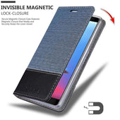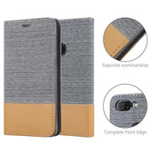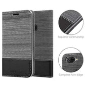 DESIGN: Modische Book Style Hülle im Stoff-Look mit Kunstleder-Applikation ohne störende Lasche oder Verschluss. Das Kartenfach und die Standfunktion machen dieses Case zu einem wahren Multitalent.