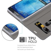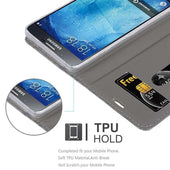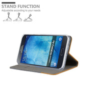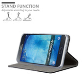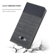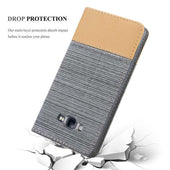 DESIGN: Modische Book Style Hülle im Stoff-Look mit Kunstleder-Applikation ohne störende Lasche oder Verschluss. Das Kartenfach und die Standfunktion machen dieses Case zu einem wahren Multitalent.