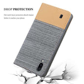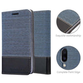 DESIGN: Modische Book Style Hülle im Stoff-Look mit Kunstleder-Applikation ohne störende Lasche oder Verschluss. Das Kartenfach und die Standfunktion machen dieses Case zu einem wahren Multitalent.