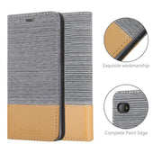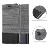 DESIGN: Modische Book Style Hülle im Stoff-Look mit Kunstleder-Applikation ohne störende Lasche oder Verschluss. Das Kartenfach und die Standfunktion machen dieses Case zu einem wahren Multitalent.