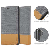 DESIGN: Modische Book Style Hülle im Stoff-Look mit Kunstleder-Applikation ohne störende Lasche oder Verschluss. Das Kartenfach und die Standfunktion machen dieses Case zu einem wahren Multitalent.