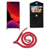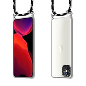 Cadorabo Handy Kette kompatibel mit Apple iPhone 12 PRO MAX Silikon Schutzhülle mit Silbernen Ringen, Kordel Band und abnehmbarem Etui