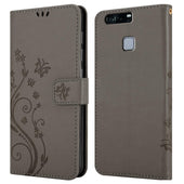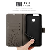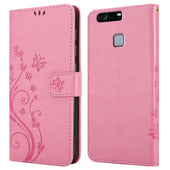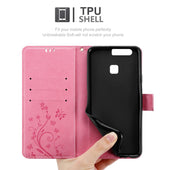 Cadorabo Hülle kompatibel mit Huawei P9 PLUS Schutzhülle im Blumen Design mit Magnetverschluss, Standfunktion und Kartenfächern