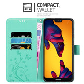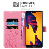 Cadorabo Hülle kompatibel mit Huawei P20 LITE 2018 / NOVA 3E Schutzhülle im Blumen Design mit Magnetverschluss, Standfunktion und Kartenfächern