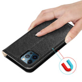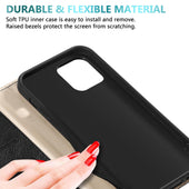 DESIGN: Ultra dünne Handytasche im Book-Style mit Kartenfach, Standfunktion, integriertem TPU Silikon Case und einem magnetischen Verschluss ohne störende Lasche.
